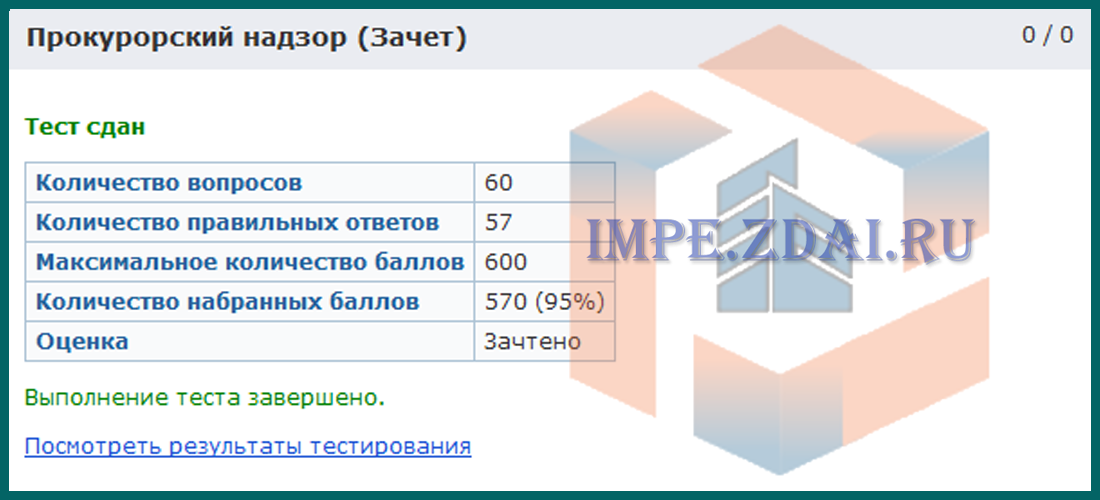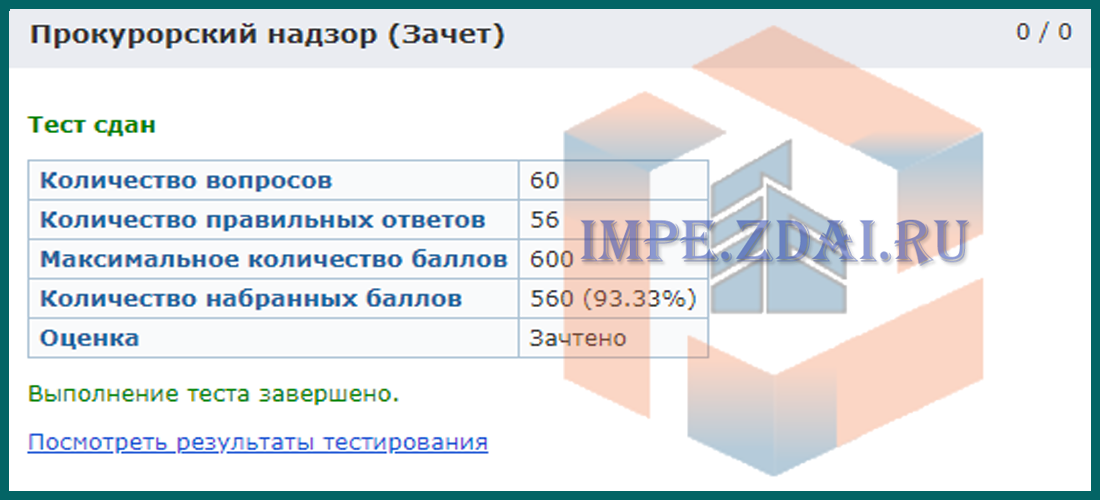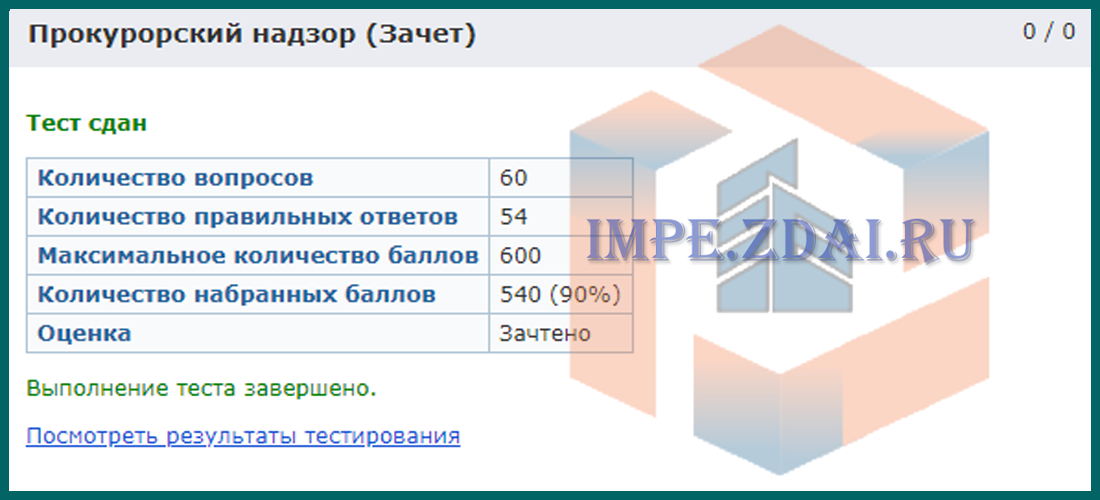Для получения положительной оценки, необходимо сдать тест.